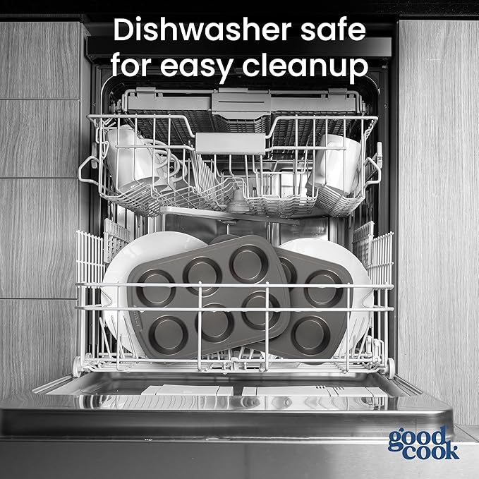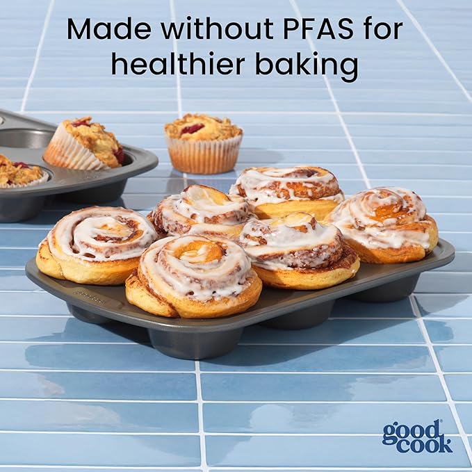 GoodCook Set of 2 Everyday Nonstick Steel Muffin Pan, 6 cup, Gray
