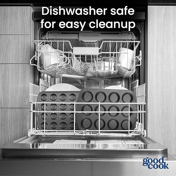 - GoodCook 12-Cup Nonstick Steel Muffin and 24-Cup Nonstick Steel Mini Muffin Pan ensures an ideal bake of you favorite muffin, cupcake, and savory treats recipes