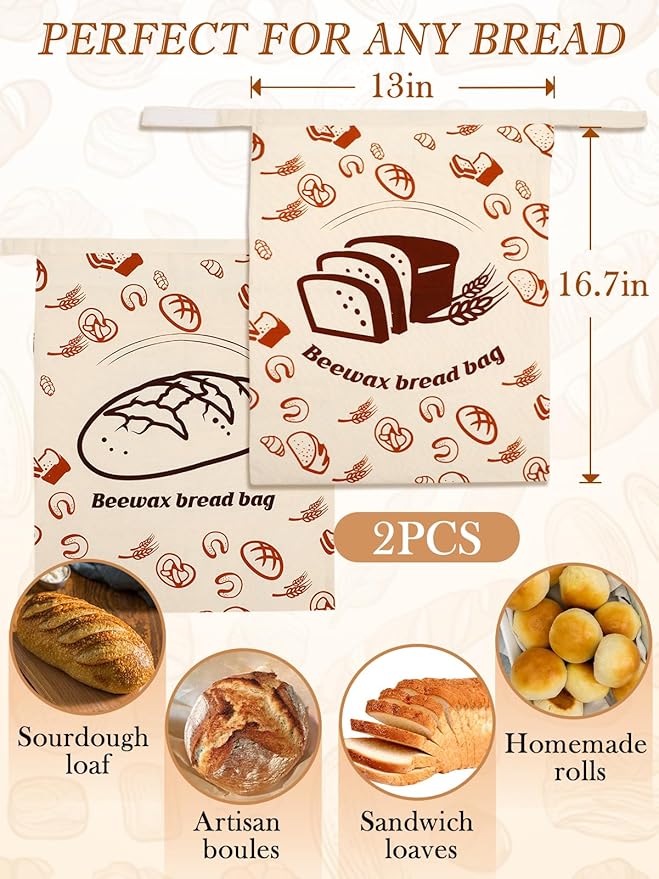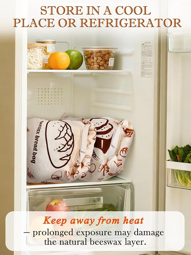 - Natural Materials for Bread Freshness: Made with high-quality beeswax and pure cotton, this bread bag provides the best storage solution for homemade bread. The natural beeswax layer creates a breathable barrier, keeping your bread moist and soft, extending its freshness by 4-7 days. Store in a cool place to preserve the beeswax layer and keep bread fresh