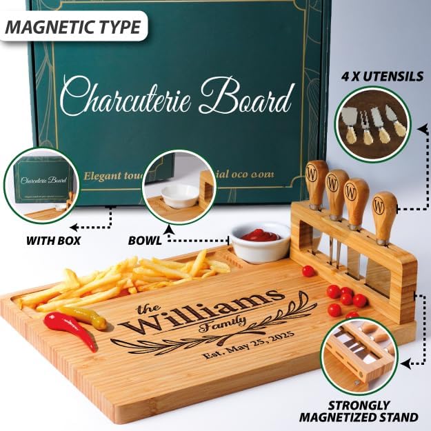 Personalized Charcuterie Board, Wedding Gifts for Couples 2025, Custom Cheese Boards Bridal Shower Gifts, Housewarming Gifts for Christmas, Anniversary, Engagement, New Home, Bride, Parent, Women