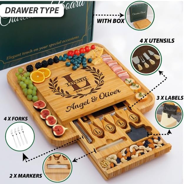 - 🖋️ Personalized Gifts for Couples – Our personalized charcuterie board can be laser-engraved with names, dates, or messages, making it a timeless keepsake and the perfect wedding gift for couples 2025.