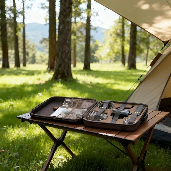 - Bullet Point 2: 【Ultimate Portability & Organization】 Travel-Ready with a Durable Hard Carry Case - Take your coffee bar anywhere. The custom-foam interior and sturdy brown portable case securely cradle each component, preventing damage during transit. The organized layout and mesh pocket make setup and cleanup a breeze, ideal for camping trips, hotel stays, office use, or gifting.