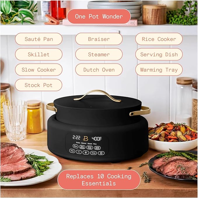 - All-in-one 10-in-1 cooking power – Replaces up to 10 separate appliances, including slow cooker, rice cooker, steamer, skillet, Dutch oven, and braiser, saving space while delivering full cooking versatility.