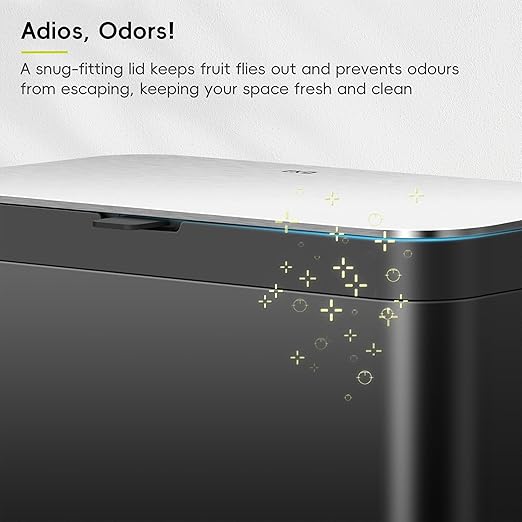 - Fresh & Odour-Free - A snug lid and built-in deodorizer compartment—with one EKO carbon filter included—lock in smells and keep fruit flies out, leaving your kitchen clean and fresh