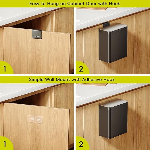 - Flexible Placement - Hang on cabinet doors, mount on walls, or place on countertops—this compost bin fits anywhere. Comes with a hook and sample bags for easy setup