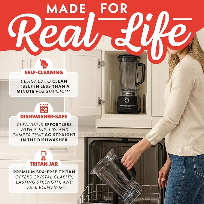 - Easy cleanup – Jar, lid, tamper, and measuring cap are removable and top-rack dishwasher safe for quick and simple cleaning
