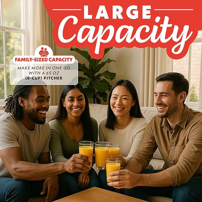 - Large BPA-free Tritan jar – 2L (8-cup) family-size pitcher includes a built-in tamper, ideal for thick blends like nut butters and frozen desserts