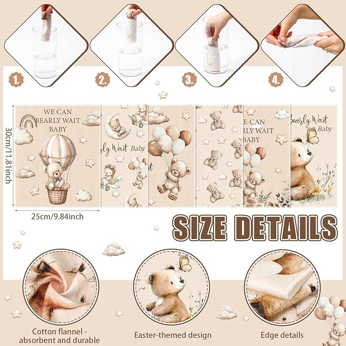 - Flannel Material: our baby shower teddy bear towels are made of cotton flannel, this material ensures an effective cleaning up and the durability of the towels even after numerous wash cycles, and they are equipped with roll, making your storage easy