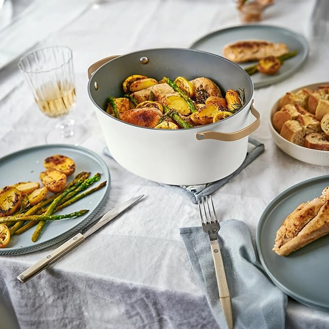 Beautiful 10-in-1 Electric Multi-Cooker by Drew Barrymore, 6-quart, digital display, 10 cooking functions, non-stick pot, easy one-touch control (White Icing)