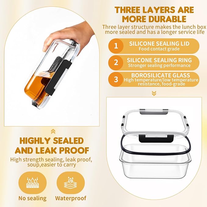 - AIRTIGHT LOCKING LIDS: Hoenjuno glass storage container comes with a BPA-free plastic lid and silicone ring that creates an airtight and leak-proof seal, keeping your food fresh for longer and preventing spills or leaks