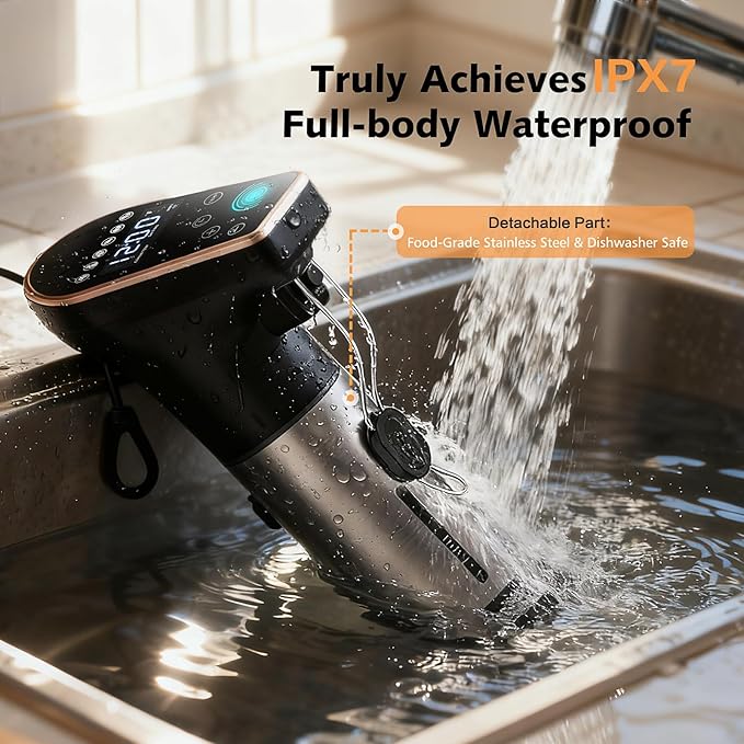 - Fast & Precise Cooking: Get cooking faster with powerful 1300W performance. The sous vide cooker immersion circulator rapidly heats your water to the perfect temperature(32-194℉ / 0℃-90℃) and maintains it with absolute accuracy, even in large pots. Enjoy perfectly cooked steak, salmon, or eggs every time—no more waiting or unstable temperatures from underpowered modelsac