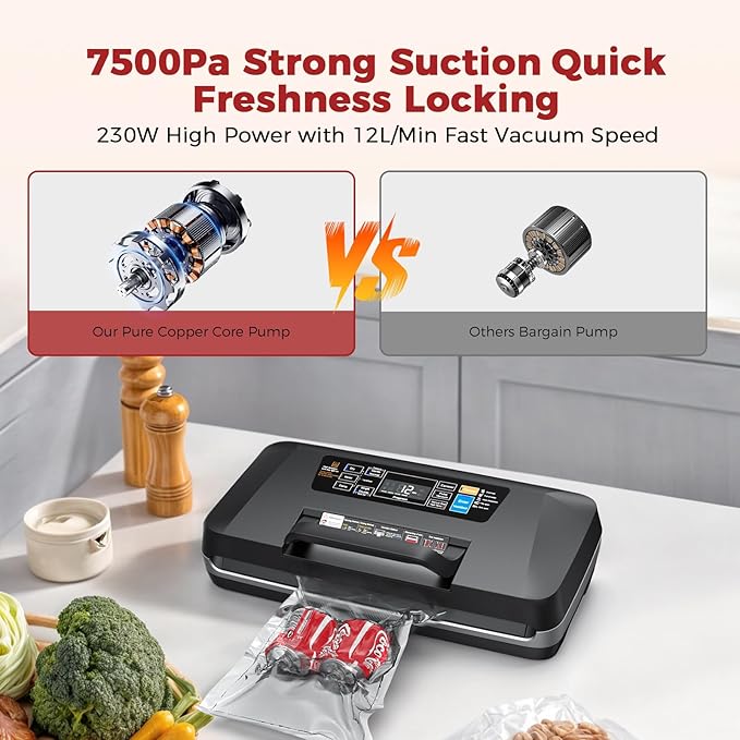 - Thoughtful Design for Convenience:The features an easy-lock handle, a separate vacuum bag storage compartment, and an upgraded dual-direction cutter. This food saver design saves time and space while making the vacuum sealer easy to use and store