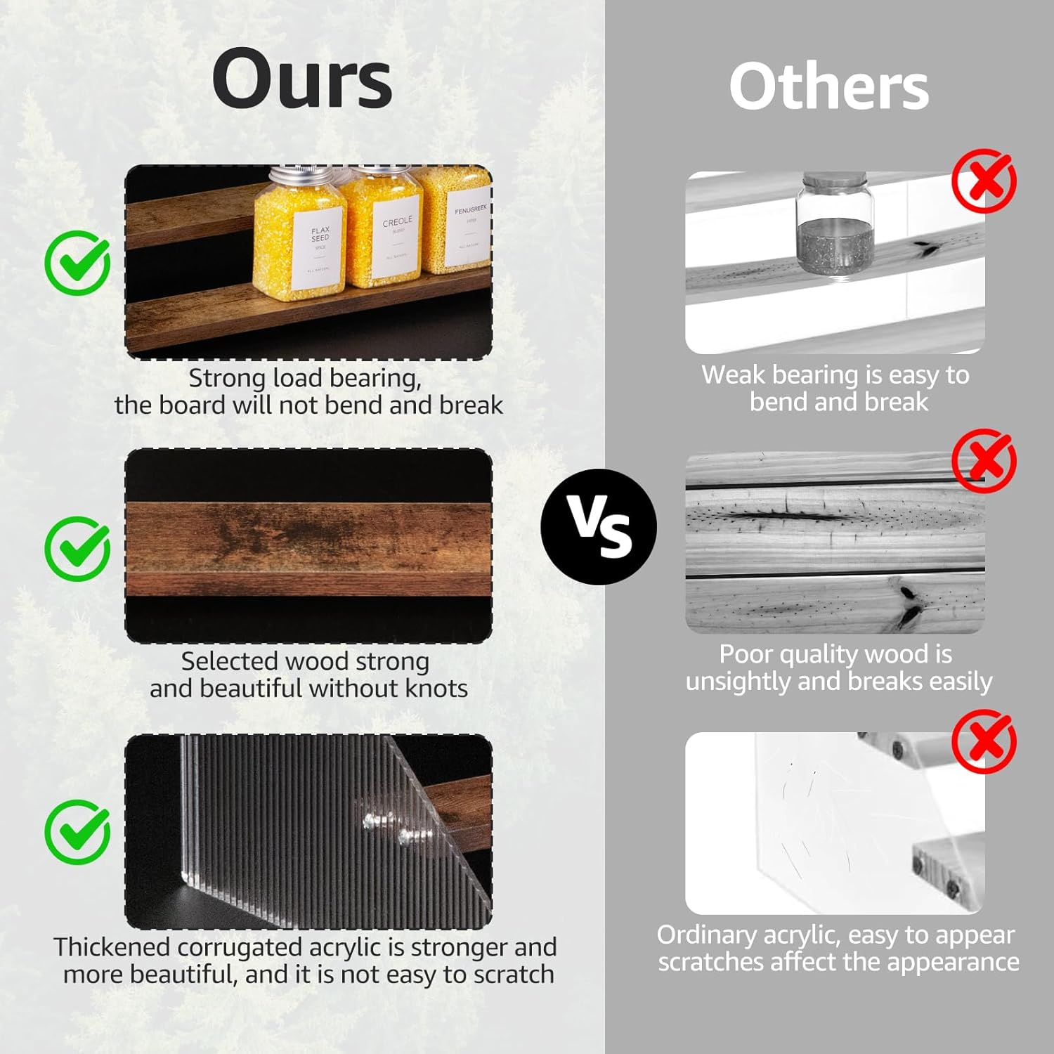 - Elegant & Sturdy: Risers display stands constructed from high-quality pine wood and corrugated acrylic, making it both aesthetically pleasing and fashionable, as well as durable and resistant to deformation, the spice shelf is a beautiful and robust addition to any space