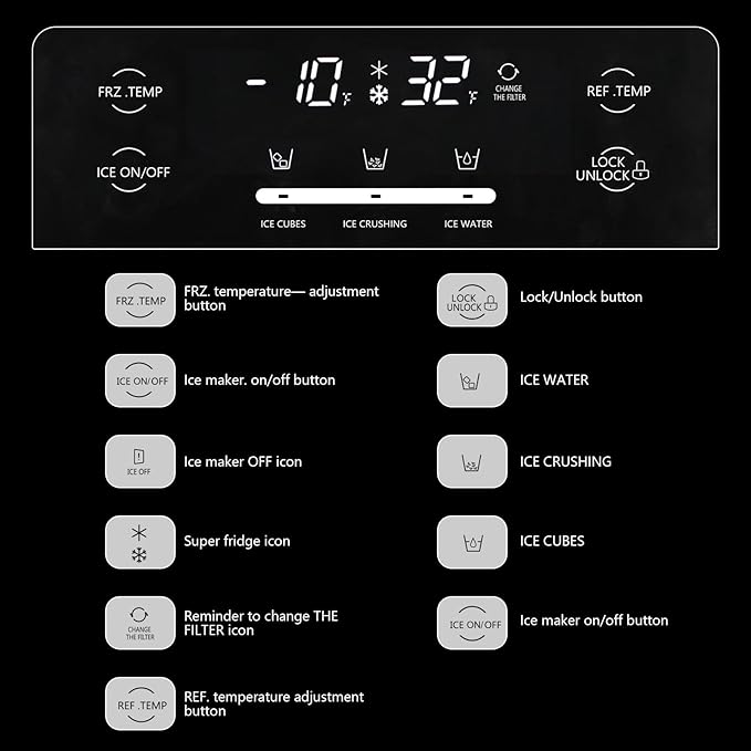 - French Freezer with Ice Machine: The elegant French-door design provides easy access to frozen goods while saving space, and the dedicated ice dispensing system keeps your cubes fresh and ready 24/7.