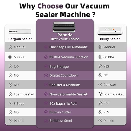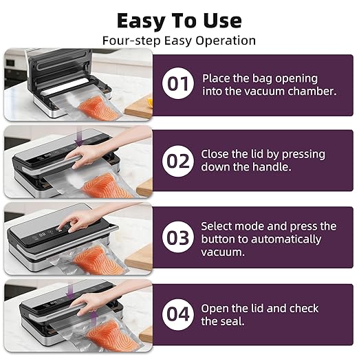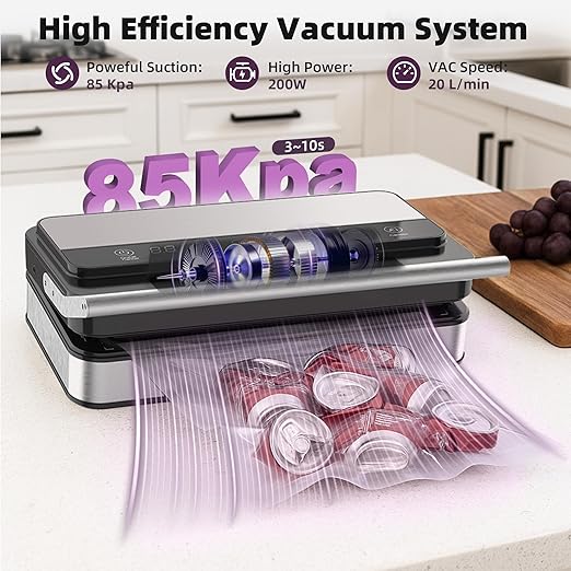 - 【85kPa Power & 200W Motor】With a 200W motor, this sealer achieves a perfect seal in 3-10 seconds—60% faster than competitors. The upgraded copper-core pump ensures durable, reliable performance and is ETL certified for your safety
