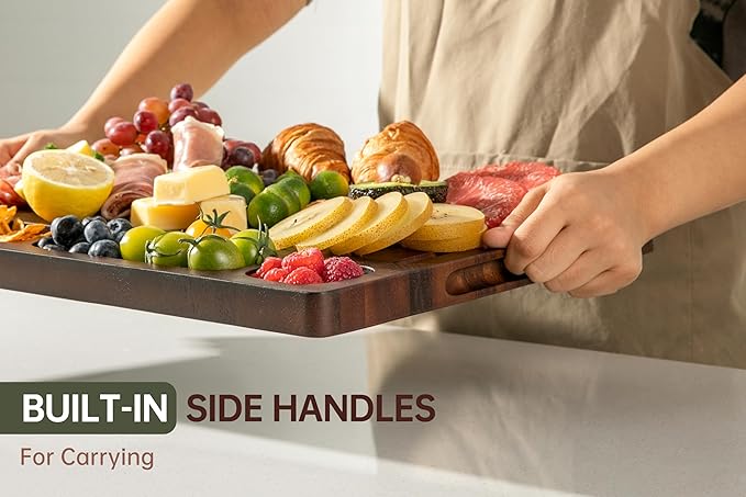 - Charcuterie Boards For Chopping Meat, Vegetables, Fruits, Cheese, Wooden Walnut Cutting Boards For Kitchen, Large Chopping Board Double Sided With Edge-Grain & Handles(Walnut, 17”X13” X1”)