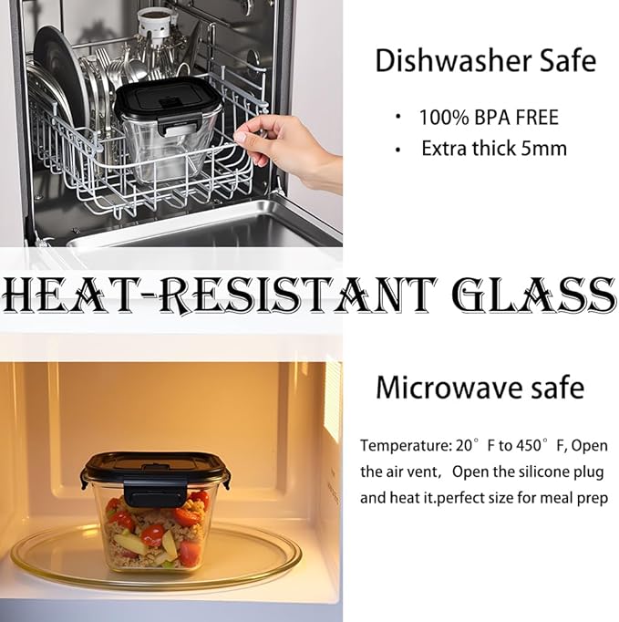 - Freezer-to-Microwave Safe : Thick 5mm borosilicate 4cup square glass containers withstand -20°F to 450°F, perfect as freezer safe and microwavable without cracking