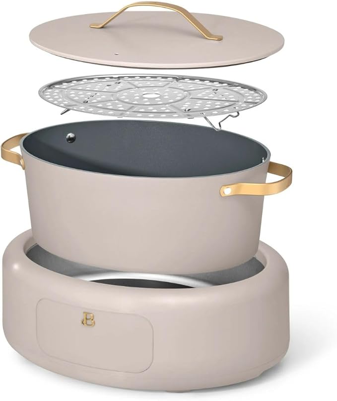 Beautiful 10-in-1 6-Qt Programmable Multi-Cooker with Oven-Safe Pot & 7 Presets – Slow Cook, Rice, Steam, Sauté (Porcini Taupe)