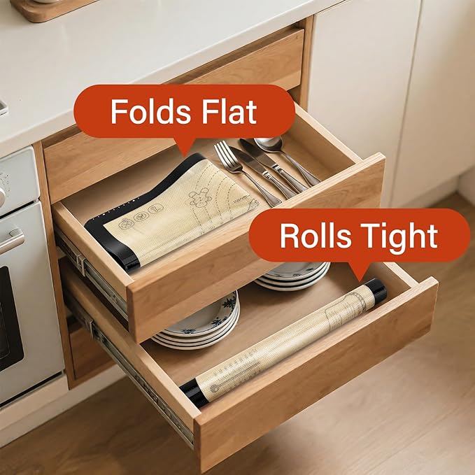 - ใ๐๐ฏ๐๐ง-๐๐๐๐ & ๐๐ฑ๐ญ๐ซ๐-๐๐ก๐ข๐๐ค (๐.๐๐ฆ๐ฆ)ใ๐งโ๐ณ Made of food-grade silicone with fiberglass core, withstands extreme temps -40ยฐF to 480ยฐF (perfect for baking/freezing). 0.7mm thickness (thicker than standard mats) resists cuts and warping.