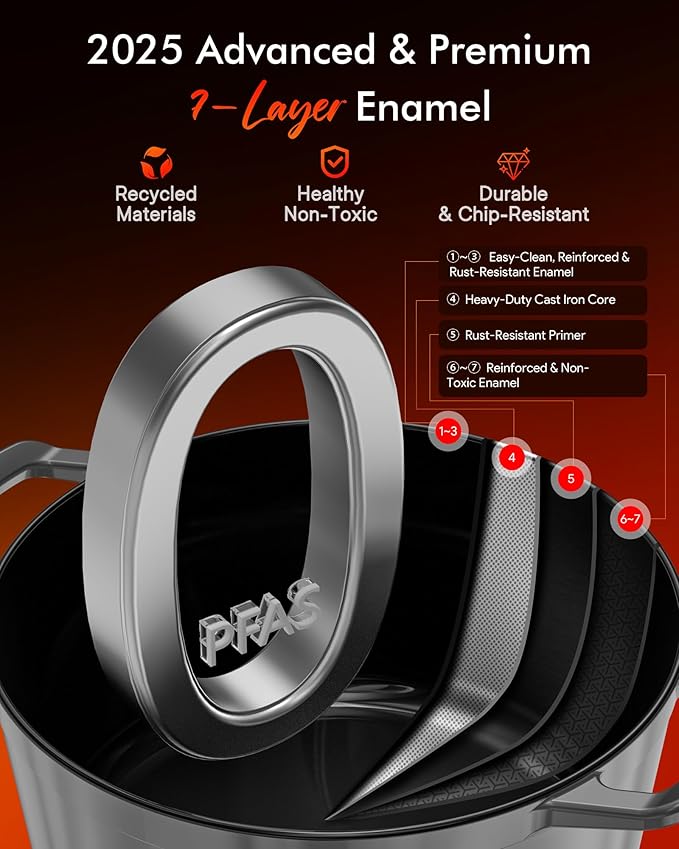 Nuwave 6QT LUX Healthy Enameled Cast Iron Dutch Oven Pot with Lid, Heavy Duty 7-Layer Enamel, Enhanced Rust Protection, Dual Handles, Oven Safe to 500°F for Sourdough Bread Baking, Braise, Stew, Roast