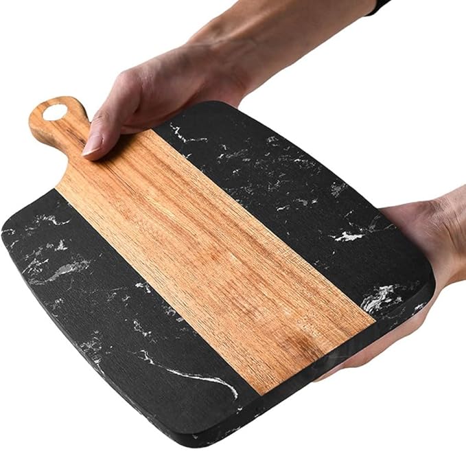 - 【 for Durable and Long-lasting】Made with acaciwood and faux marble, this cutting board ensures durability and longevity. The combination of wood and marble not only adds functionality but also enhances its aesthetic appeal.